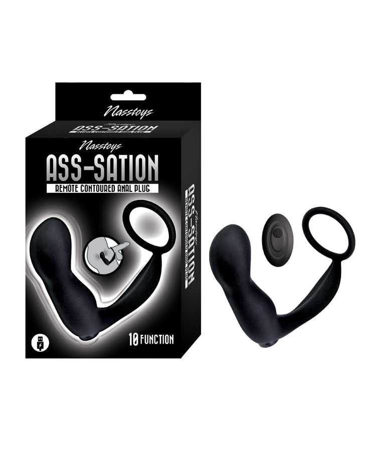 Unlock a world of intense pleasure with the Nasstoys Ass-Sation Remote Contoured Anal Plug. This dynamic, all-in-one toy combines a cock ring and prostate plug, crafted from body-safe silicone for a smooth and comfortable experience. With 10 powerful vibrating functions, you can easily switch settings using the remote control, making it perfect for solo exploration or partner play. The plug's curved, bulbous, and girthy design is ergonomically crafted to target the prostate, while its unique pulling sensation during play intensifies your experience. Beyond delivering incredible sensations, the Ass-Sation is designed to enhance performance, helping you achieve bigger, harder, and longer-lasting erections with more powerful ejaculations. For the most comfortable experience, use water-based lube, and clean your plug thoroughly before and after each session with toy cleaner or mild soap. This versatile plug is perfect for those looking to elevate their pleasure and enjoy the ultimate in prostate stimulation.