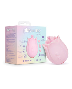 Discover the enchanting allure of Play With Me's Romantic Rose. This rose-inspired, compact personal massager is designed to bring both pleasure and beauty to your most intimate moments. With 10 luxurious vibration modes, Romantic Rose offers targeted sensations that let you explore moments of pure bliss. Each of the three interchangeable rosebud heads features a unique texture, allowing you to customize every touch. Whether you crave delicate caresses or focused, pinpoint pleasure, Romantic Rose adapts to your desires, offering exquisite clitoral and nipple stimulation. Made from body-safe, platinum-cured silicone, its smooth, satin-like surface feels as gentle as it is delightful to hold. Splashproof and USB rechargeable, Romantic Rose is your perfect travel companion, ready to inspire moments of romantic delight wherever you go. Let each pulse guide you toward new heights of pleasure and romantic bliss.
