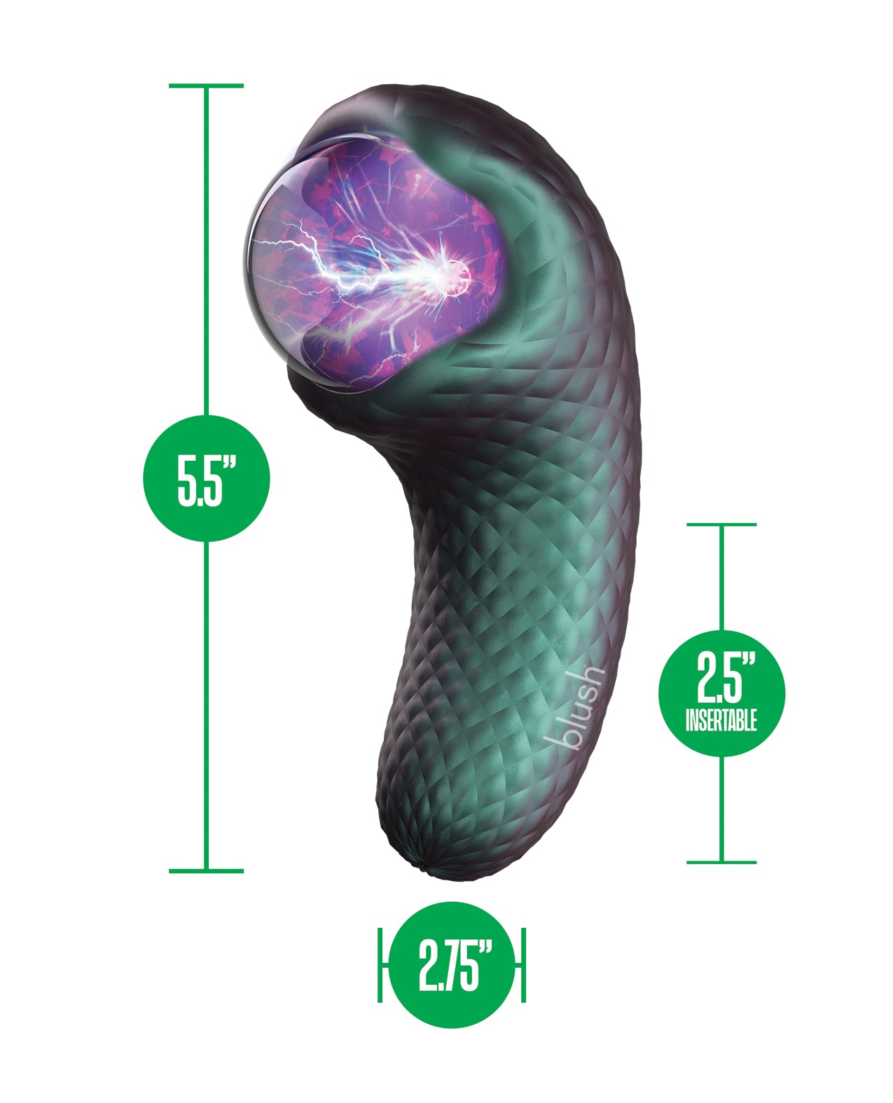 Unlock your deepest desires with Temptasia's Enchanted Serpent, a mythical pulse vibrator that lures you into a realm of erotic fantasy. With its mesmerizing plasma globe, it illuminates your most intimate moments with a captivating and responsive visual display, while amplifying every touch. The Enchanted Serpent's dual motors create a fully personalized play experience, allowing you to customize each setting to match your every desire. Surrender to the allure of its 10 tantalizing settings—perfectly combining internal and external sensations for pure satisfaction. Made from luxurious textured silicone, its satin-smooth surface glides seductively across your skin, igniting arousal with every touch, and its glowing pulse adds an otherworldly thrill to your intimate adventures. Waterproof and USB rechargeable, the Enchanted Serpent is always ready for your next passionate escapade. Surrender to its seductive charm and let it guide you into a new realm of pleasure and ambient fantasy.