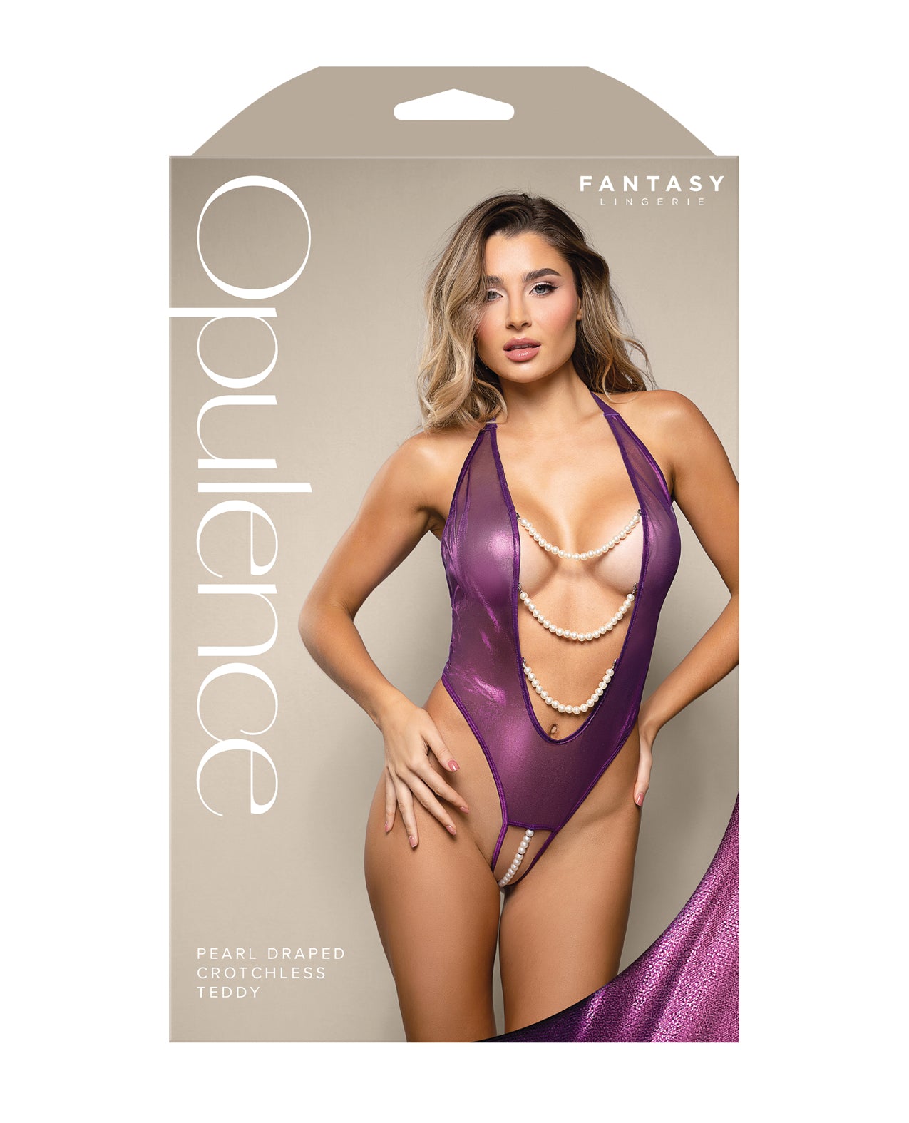 Opulence Shimmer Mesh Halter Teddy – Purple: Dazzling Seduction with a Pearl Finish