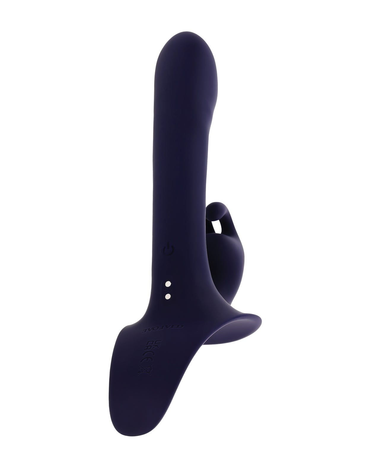 Give and receive with the Evolved Giving Vibes Strap-On Bunny, a flexible triple-motor vibe designed to please both partners at once. Featuring a curved, chisel-tip shaft for deep penetration, a chunky bunny-eared stimulator for external thrills, and a tail flap motor that presses against the wearer’s body, this strap-on transforms ordinary encounters into a fully immersive experience.