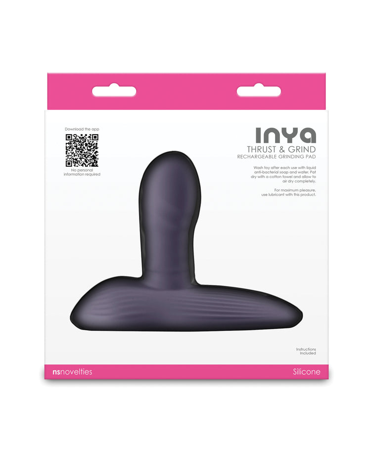 App-enabled.Thrust & Grind by INYA - a new concept for intense sexual satisfaction, T & G features a short thrusting wand, a vibrating pad and a suction feature to allow hands free use. Operable alone or via a downloadable APP and suitable for sitting or laying, this grinding pad is made from body-safe silicone. Rechargeable. Water Resistant. Suitable with all lubricants. Scan QR code on box for app download. 6 speeds / 6 functions.