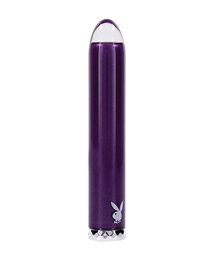 Indulge your gemstone fantasies with the dazzling Amethyst Vibrator. Its state-of-the-art motor amps up to 10 speeds and rhythms while the smooth pointed glass tip creates a delicious sensation, gliding with ease across your hot zones. Navigate securely with the diamond-pattern base that features the iconic Playboy bunny. Five Year Warranty.