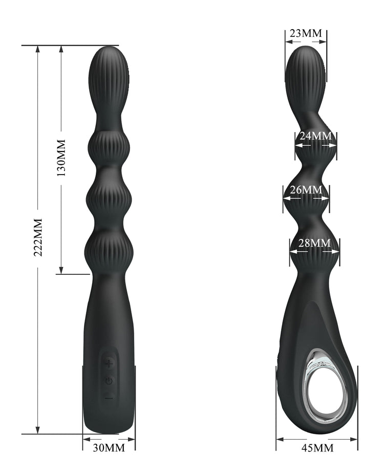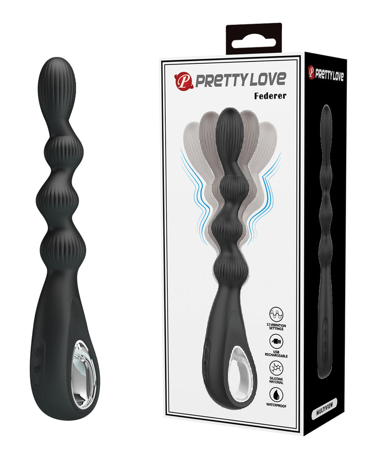 Pretty Love Federer Vibrating Beaded Anal Probe - Black