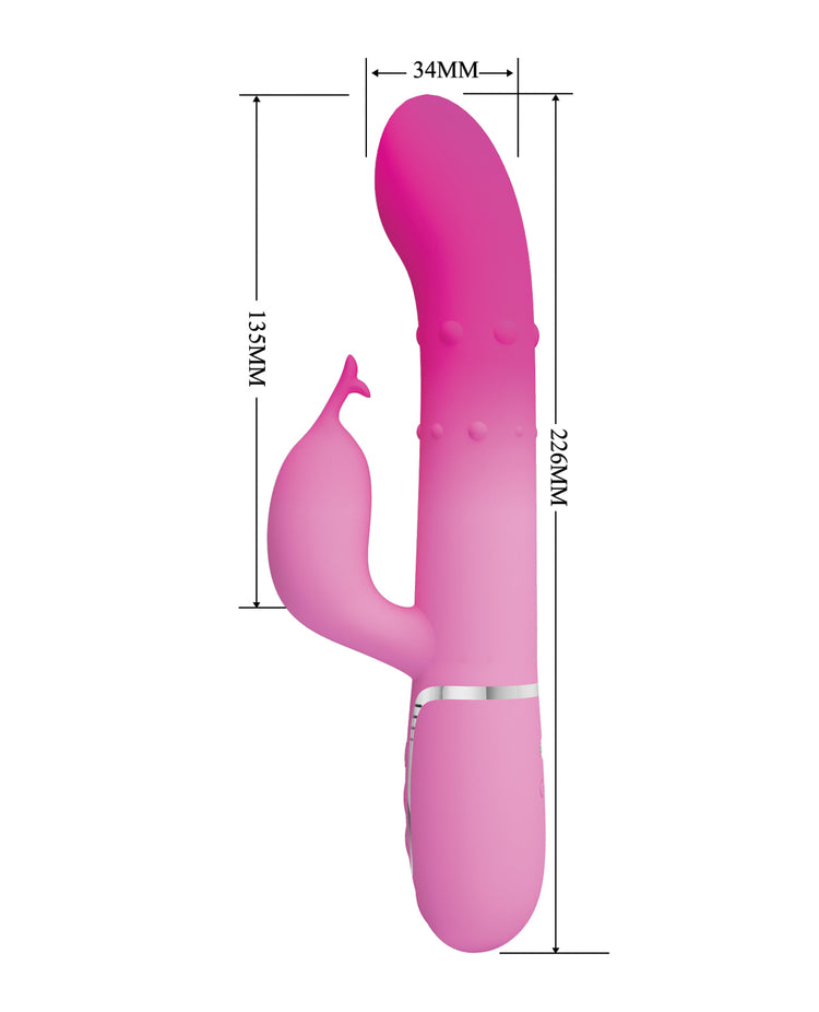 Designed for maximum pleasure, stay in bed with the Pretty Love Rabbit Vibrator. With powerful twin motors, one located in the tip and the other in the external arm, we promise you'll find your perfect vibe as 7 vibrating intensities and rhythms bring you to a powerful blended climax. Featuring rigid beads that travel up and down in a thrilling intimate massage in the upper part of the shaft, and enjoy the 4 speed beads rotation massage settings at the same time in the lower part of the shaft. What is more, the clitor stimulator will steadily rubs against your sensitive sweet spot,too. For enhanced pleasure, press the Super Power button to explore earth-shattering orgasms!